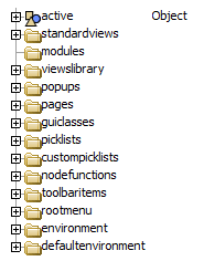 In addition to containing all model, library, and project information, the FlexSim tree also stores all windowing and interface information. All open windows, menus, toolbars and buttons have a corresponding representation in the FlexSim tree. We call these types of nodes view objects.