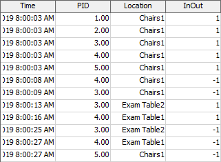 - InOut - This column records a 1 if the location was entered. If the location was exited, this column records a -1.