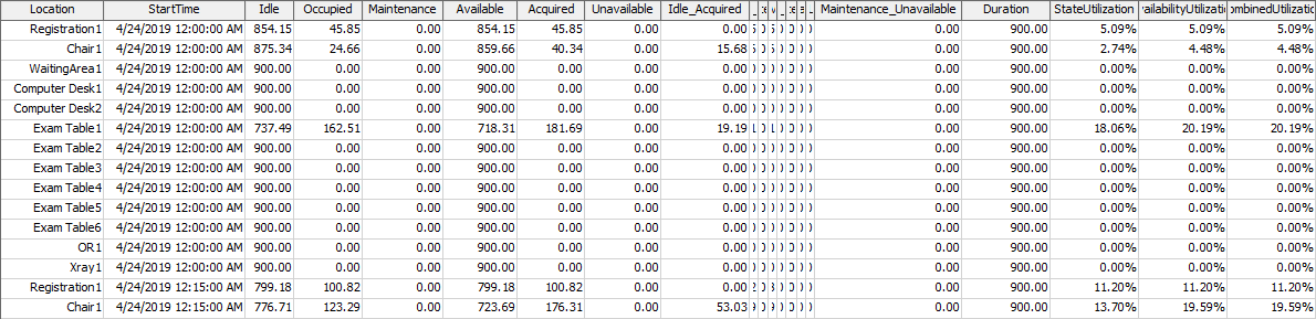- StateUtilization - This column shows the utilization of the object for the interval, based on the Location states.
