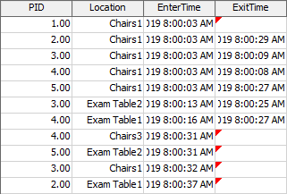 The ExitTime column is set to the current time when the flowitem exits the Location. All other values are set when the row is added.