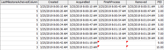 - Removed - This column records the time that the flowitem was removed with the Remove Person activity.