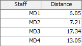 - Distance - This column records the distance travelled by each Staff object during the model run.
