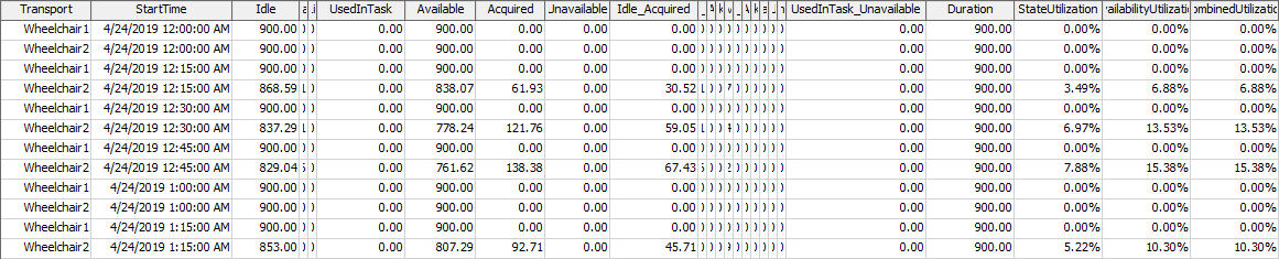 - CombinedUtilization - This column shows the utilization of the object for the interval, based on the combination of Transport and Availability states.