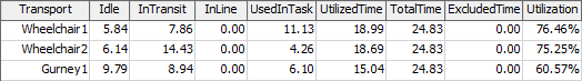 - Additional States - These columns record the amount of time that the Transport object has spent in one of the additional states. The name of the column is the name of the state specified in the People Settings object.