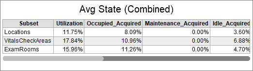 This chart template creates a table chart. The template calculates utilization based on time spent in combinations of state and availability status.