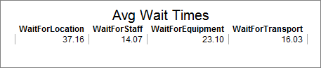This template calculates and displays average time that flowitems (created with the Create Person activity) have waited for Locations, Staff, Equipment and Transports.