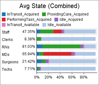 This chart template creates a bar chart, and calculates utilization based on each object's time in various states.