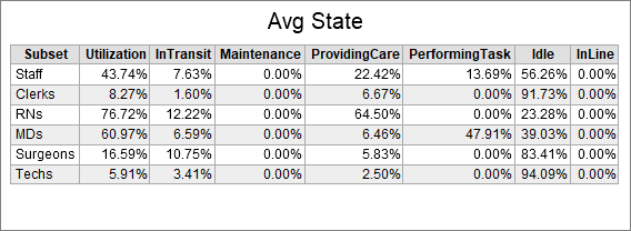 This chart template creates a table chart, and calculates utilization based on each object's time in various states.