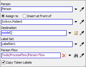This creates copies of a Person flowitem from the flowitem bin in the specified destination. The created person can optionally be attached to a Person Process Flow object.