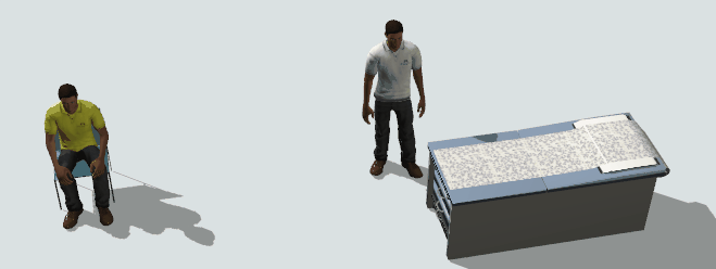 The staff will exit their current location and walk to the person being escorted. The person will exit their current location and then the staff and person will walk together to the destination. If the destination is an object both the staff and person will enter it.