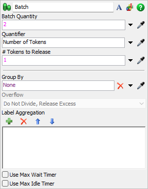 - Overflow - This property determines what will happen if an entering token will cause the batch to exceed its Batch Quantity.