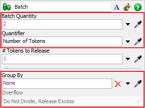 - Batch Quantity - This property sets the target value for the batch. The batch will continue collecting tokens until this value is reached, after which the batch will be released.