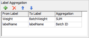 One possible use of the label aggregation would be to calculate the total weight of all of the parts that are combined into a single part. If each token represented a single part and they each had a label named Weight, the label aggregation can be used to sum all of the weights of every token added to the batch and create a new label like BatchWeight that will be assigned to all of the outgoing tokens.