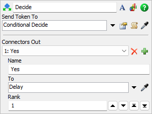 - Sending to a connector that doesn't exist. If the Send Token To property returns an invalid rank or a connector name that doesn't exist, the token will remain in the Decide activity and not be released. This can also be done by returning a negative number in the Send Token To property.