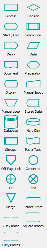 The Process Flow library has many different shapes available, including standard flowchart shapes: