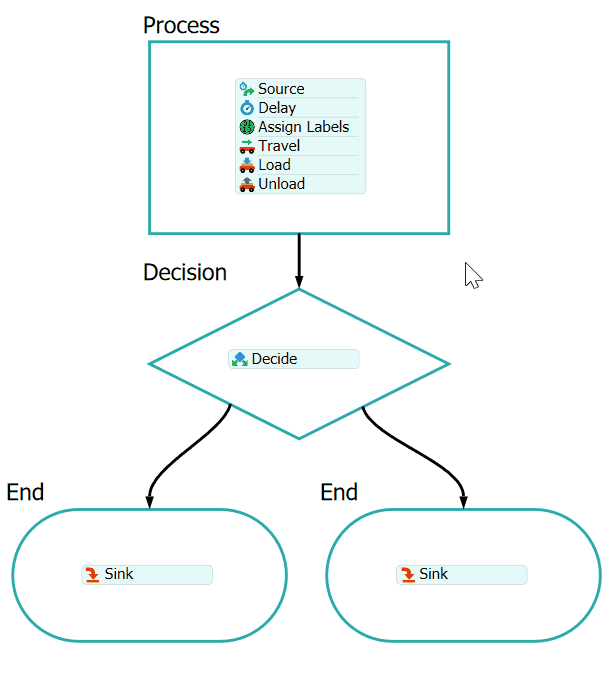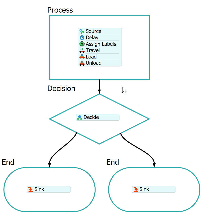 There are many different Flowchart objects available in the Process Flow Library. You can use these shapes to build a classic flowchart in your process flow. You can also use them as visual containers that help organize, encapsulate, and visualize the activities in your process flow.