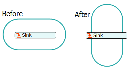 Using the Rotation box, you can set the angle (in degrees) at which the Flow Chart object will display. The base line is horizontal and the rotation is to the right. For example, a rotation value of 90 will result in the following image, which shows the object before and after rotation: