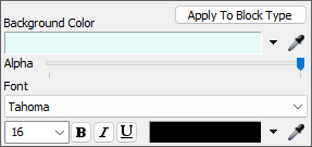- Apply to Block - This button will cause the background color and font of the selected activity to be copied to all activities that are stacked together with this activity.