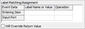 - match - This will match the label's existing value to the parameter that is being referenced. The token will only finish the activity when the event fires AND the event's parameter matches the value of the token's label. For example, you may be tracking an item through the system. The token's item label points to the flow item in the model. You want to catch when that specific item enters a fixed resource (like a queue) in the model. To do that, you can subscribe to the OnEntry event of the fixed resource, and then for the Entering Item row of the table, enter item in the Label Name or Value column, and match as the operation. This option is not available for the Event-Triggered Source.