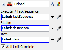 The Unload activity creates an unload task sequence and dispatches it to a task executer. Optionally, the task may be appended onto an already existing task sequence. See Create Task Sequence activity for more information.