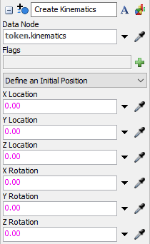 If Define an Initial Position is selected, these properties will be displayed. These define the initial location and rotation of the created kinematics.
