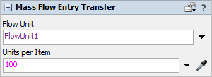 The Mass Flow Entry Transfer panel defines properties for a mass flow entry transfer.