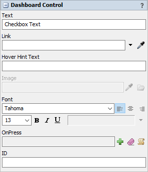 The following properties are on the Dashboard Control panel: