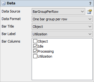 If the Data Format property is set to One bar per row, then the data panel has these additional properties: