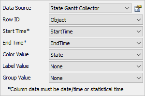 Choose a column from the data source that contains the start time for the box on the gantt chart. This column must have FlexSim time data in it.