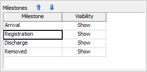 Use this table to determine whether or not to show each milestone, and what order to show the miltestones in.