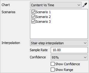 - Show Confidence - Check this box to have the Scenario Chart calculate and display the confidence interval vs. time.
