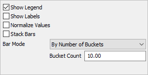 Check this box to show the bar chart in percentage mode, rather than by raw value. If this box is cleared, then the x-axis will switch to raw value mode