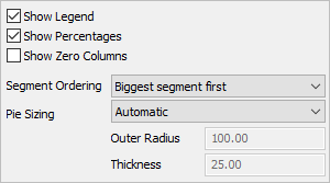 Check this box to show the pie chart in percentage mode, rather than by raw value. This only changes the center text. If this box is cleared, then the center text will switch to raw value mode.