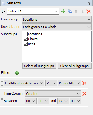 - Each group as a whole - creates one subset per selected group that only include rows that deal with objects from the whole group.