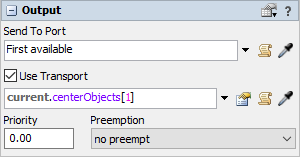 When you check the Use Transport box, an additional field is enabled where you define to whom the generated transport task sequence should be dispatched. The default will give the task sequence to the task executer/dispatcher connected to the object's first center port (current.centerObjects[1]), but you can custom-define this as needed.