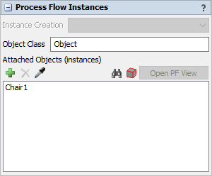 The Process Flow Instances panel displays which objects are attached to this process flow. This properties panel is not available for General Process Flows. See Process Flow Instances for more information about instances and related concepts.