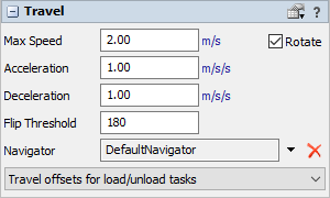 The Travel panel controls how task executers travel in the model.