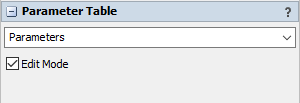 The Parameter Table panel allows you to switch between different Parameter Tables in the model and toggle their Edit Mode.