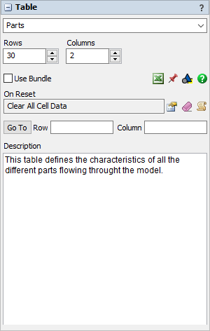 This is the table's name and has a list of all of the model's Global Tables. The name should be memorable and describe the table's function. The commands to read and write to global tables access them by name. You can view other Global Tables in this window by clicking the dropdown arrow next to the name.