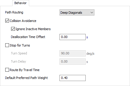 When checked, the collision avoidance algorithm will ignore allocations made by inactive travelers. After a traveler has arrived at its destination and ended active travel, the traveler will be essentially invisible to the collision detection algorithm. This means that travelers will run over other travelers that are not actively traveling.