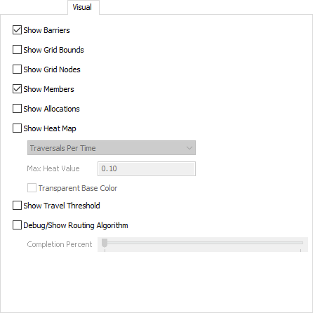 This checkbox is used primarily for debugging purposes. When checked, the A* search algorithm will save additional data that tracks each traveler's last path finding operation. To see this information: