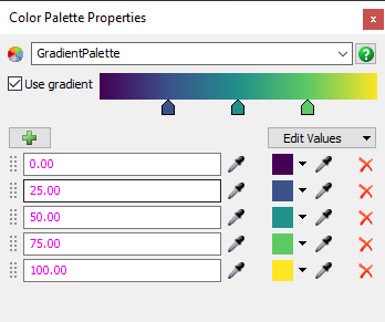 If you check this box, the color palette will use the assigned number values to form a gradient. A gradient editor field will appear, allowing you to change the locations of the color stops.