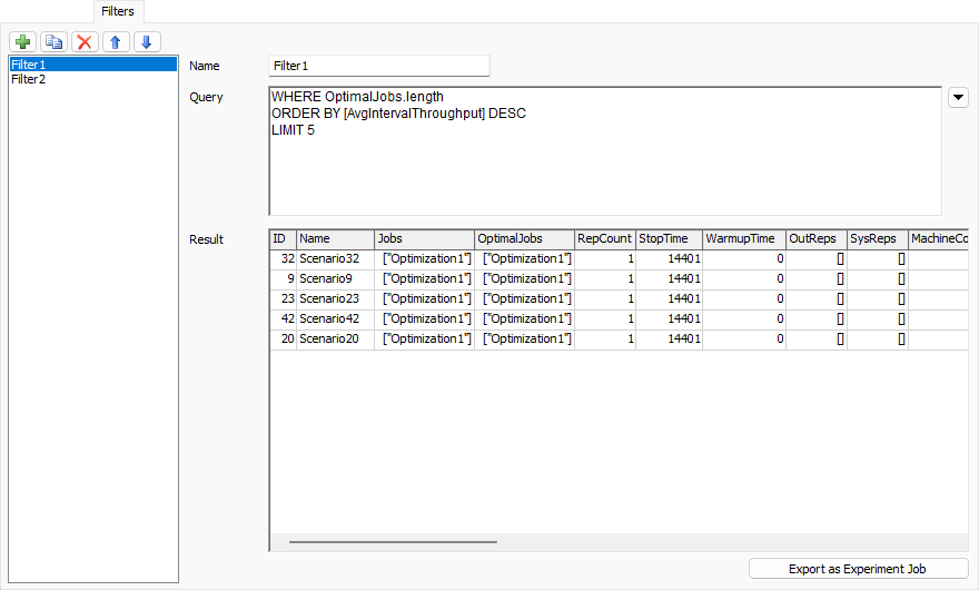 Press this button to export the current filter's scenarios as a new Basic Experiment Job.