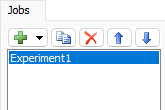 The Jobs Tab allows you to add, remove, reorder, and edit the Jobs in the Experimenter. The left side of the tab allows you to view and edit the list of Jobs. The right side of the view allows you to edit the selected Job.
