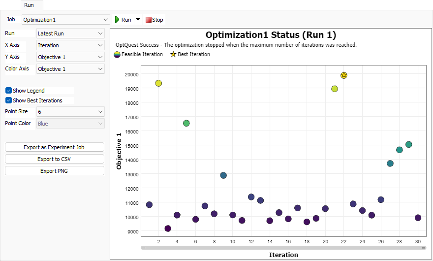 Check this box to mark the best iterations with a gold star. If you have a single objective, only one iteration will be marked. If you have multiple objectives, each iteration on the trade-off curve will be marked.