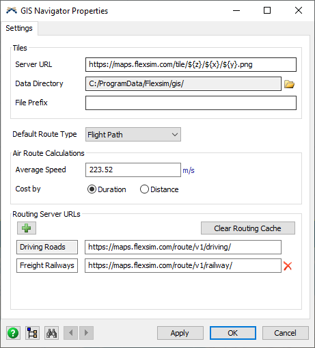 The GIS Navigator is used to calculate the geographic position of travelers as they travel along routes between points on maps. The GIS Navigator has settings that affect how map tiles are rendered and how routes are calculated.