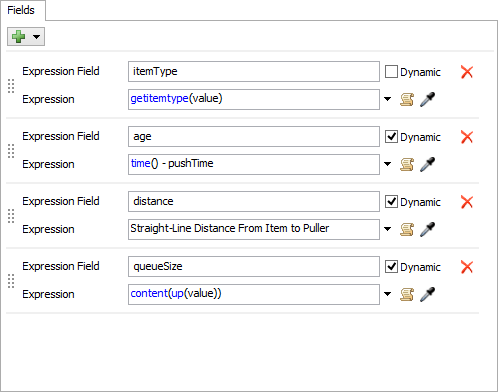 Each field you add (except push arguments) can be a dynamic field by checking the Dynamic checkbox. A dynamic field is a field whose source value may change while an entry is on the List. While a non-dynamic field's value will be evaluated only once when the entry is added to the List, a dynamic field's value will be re-evaluated every time the list is queried with a pull request. For this reason, non-dynamic fields are faster in execution, but dynamic fields offer more power in querying lists whose source values may change. Also, all puller-dependent fields must be designated as dynamic.