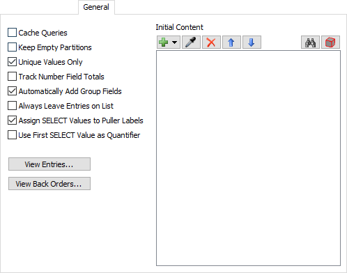 The General tab is where you define general properties for a List. To get to the General tab, double-click on the desired List in the Toolbox. Then select the General tab.