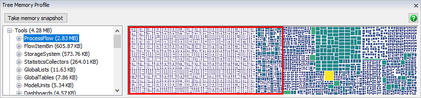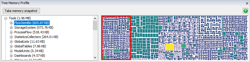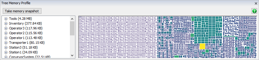 The Memory Profiler window allows you to see how memory is being used by FlexSim: