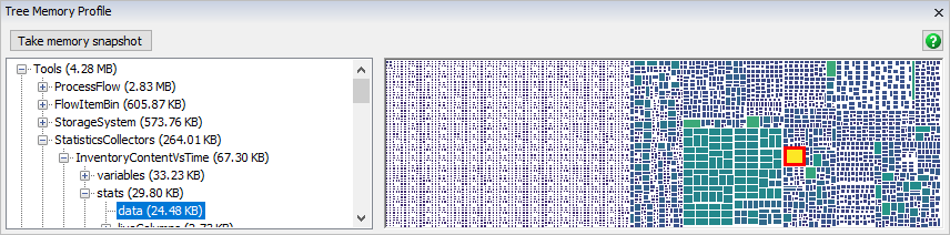 The Memory Profiler works by traversing FlexSim's tree and estimating the memory use of each node.